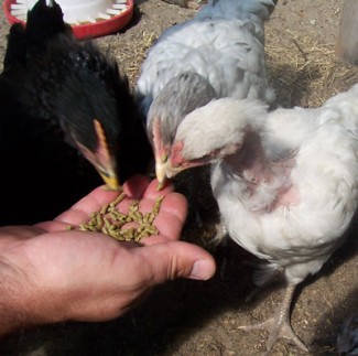 You can feed chicken store-bought feed pellets. They also love vegetables scraps, bread and bugs. Give them fresh water regularly, keep their area clean and you’ll have happy chickens. Check on them daily and collect their eggs each day as well. Eggs can go bad quickly in warm weather and in cold weather; they can freeze, expand and crack.